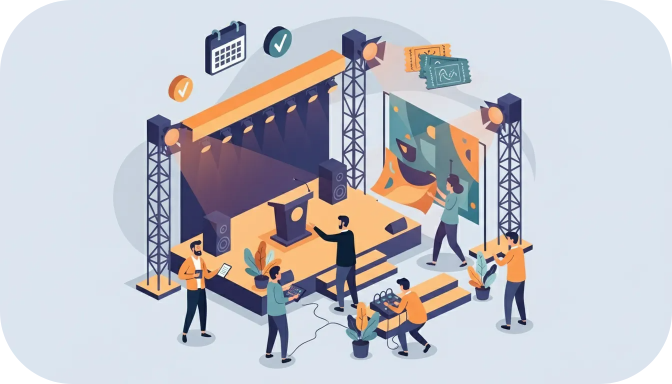 Siap menciptakan acara yang berdampak tanpa repot? Tim produksi dan manajemen kami akan memastikan pesan brand tersampaikan, keterlibatan peserta maksimal, serta mitigasi risiko melalui perencanaan transparan dan jaringan vendor & talent terpercaya. Cocok untuk peluncuran produk, konferensi, maupun roadshow multi-kota. Jadwalkan sesi Anda segera dan ubah acara menjadi momen yang berkesan.